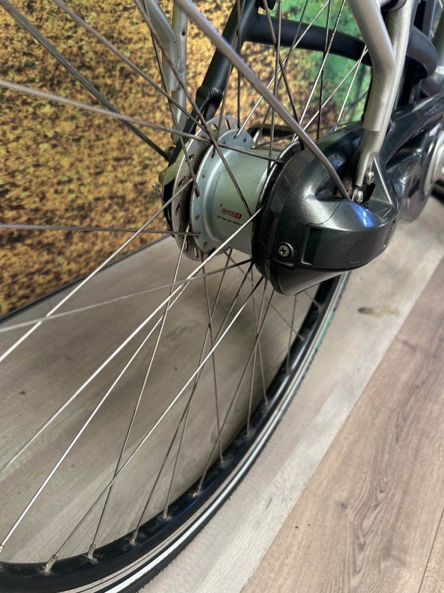 De fiets is voorzien van een magneet motor met Emotion techniek, de Voorwiel motor heeft 30 koppel. Deze krachtige 250 watt motor is voorzien van een rotatiesensor, deze zorgt ervoor dat u met heel weinig moeite en kracht eenvoudig de gewenste snelheid bereikt. Daarom komt u altijd uitgerust op uw bestemming aan, de dagelijkse ritjes naar het werk of naar school zijn daarom uitermate geschikt voor deze fiets. De fiets heeft een Shimano nexus 8 versnellingsnaaf met een onderhoudsvrij remsysteem (rollerbrakes)